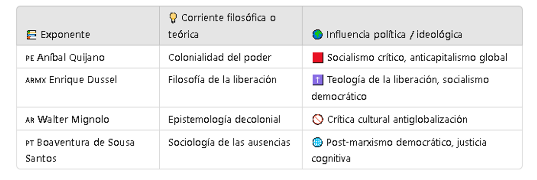 Aquí el corazón del asunto: los autores y corrientes que inspiran la NEM vienen de un largo proceso de crítica al colonialismo y al capitalismo global. Así se agrupan los principales exponentes: